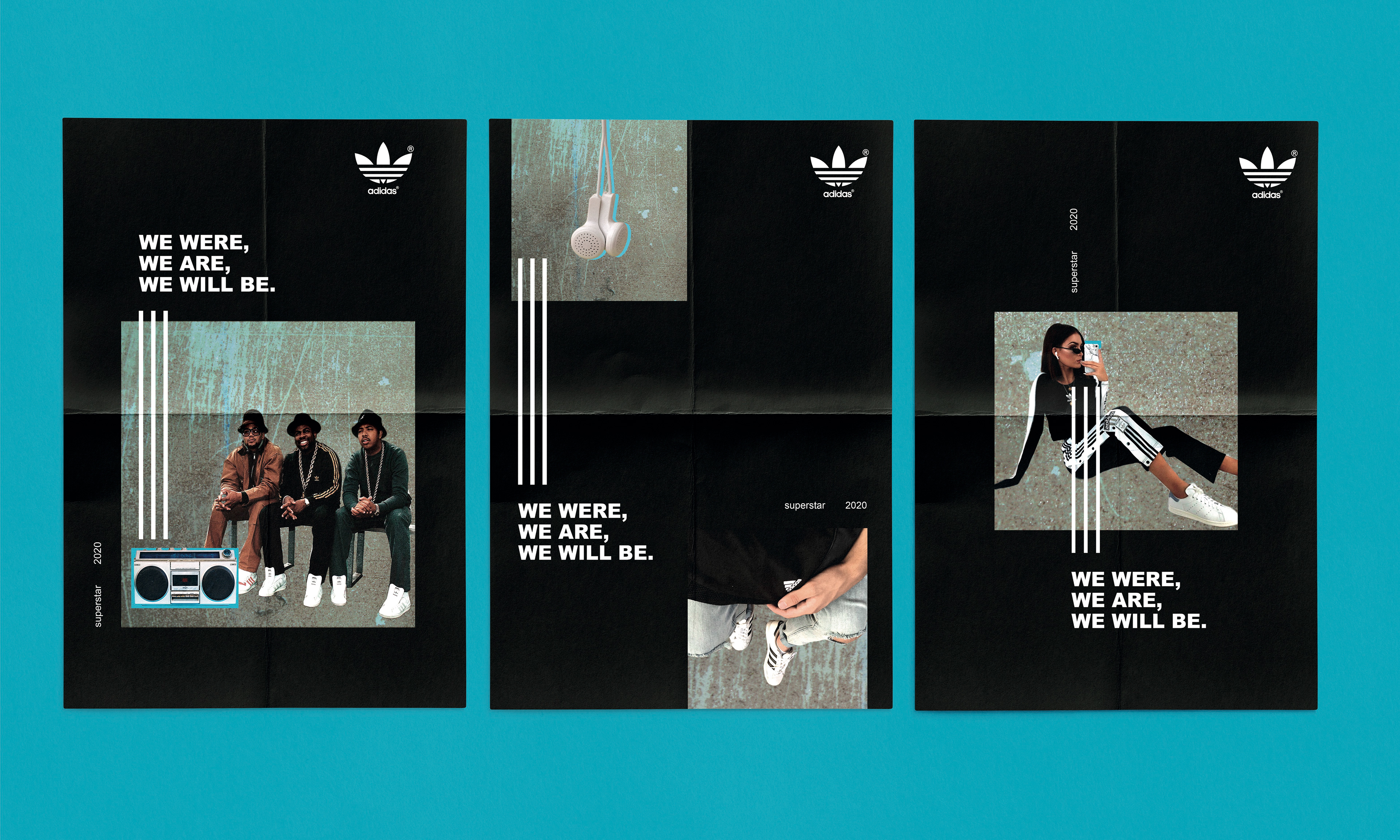 Celebrar el aniversario de Adidas Superstar con una campaña publicitaria dónde se refleje el producto como un icono en tendencia. (Proyecto del máster en diseño gráfico).